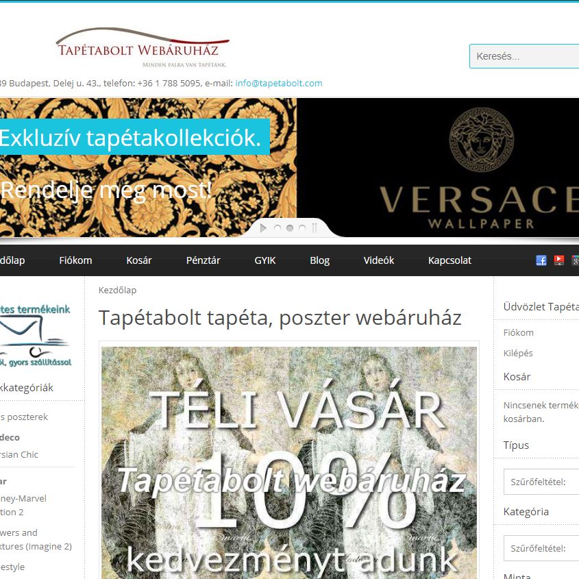 Több webáruházzal és boltal állunk Ügyfeleink részére, széles választék nem csak Olasz tapétákat forgalmazunk!